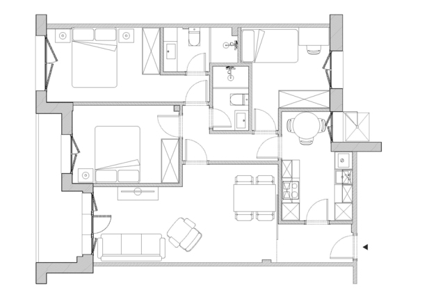 La nueva distribución propuesta nos permite articular un nuevo formato de vivienda en la que los espacios de circulación se ven reducidos.