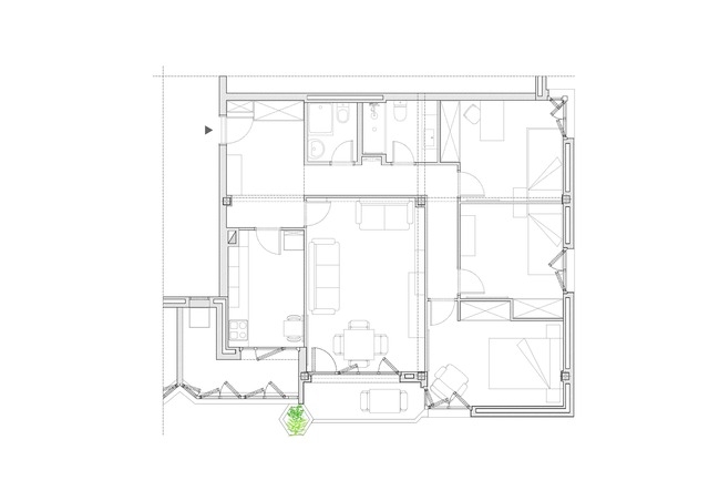 La actuación se focaliza en la creación de un espacio salón-comedor dinámico, que forma un todo con el recibidor y el nuevo acceso a la cocina.